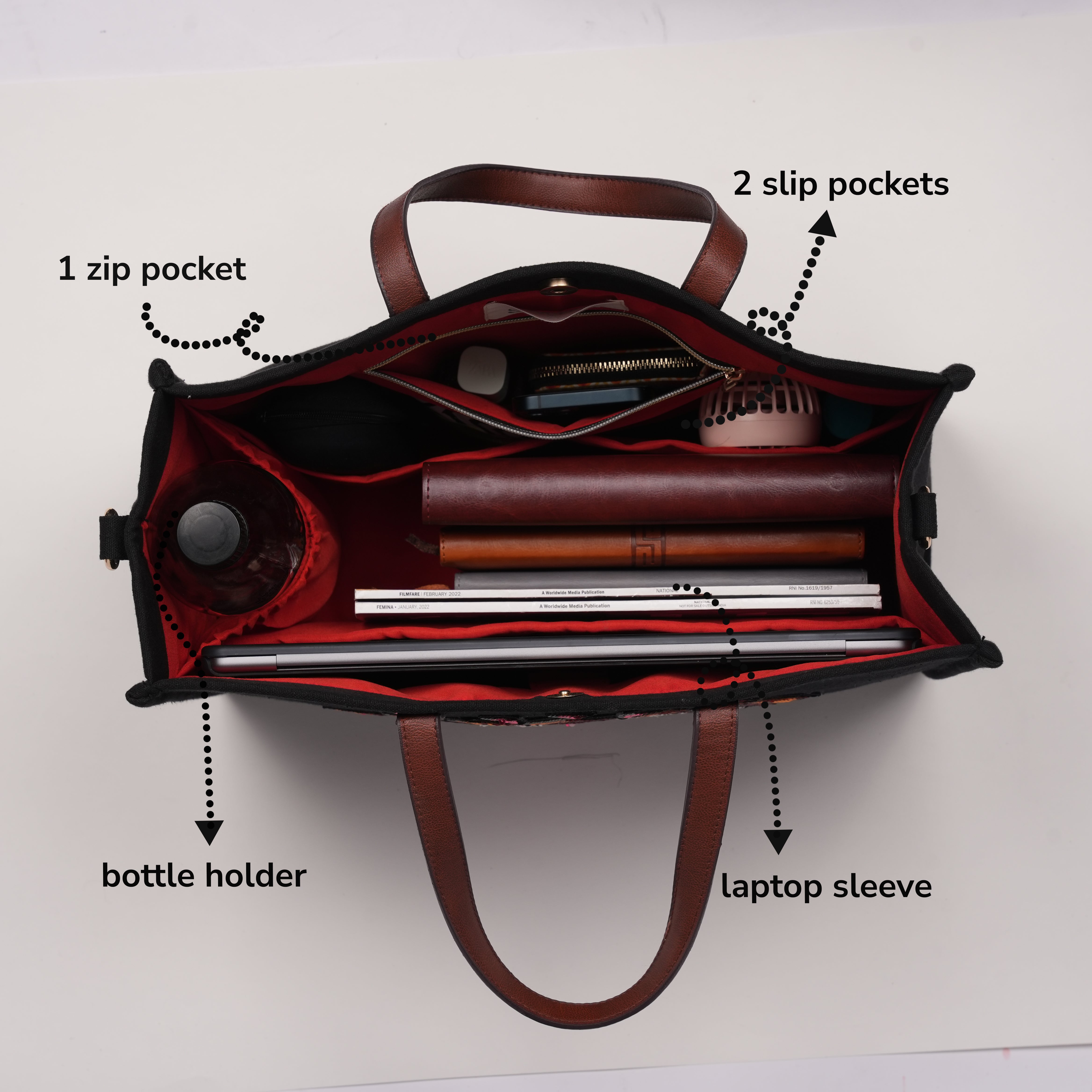 Materials- 100% Premium Cotton Material, Brown Faux Leather Handles