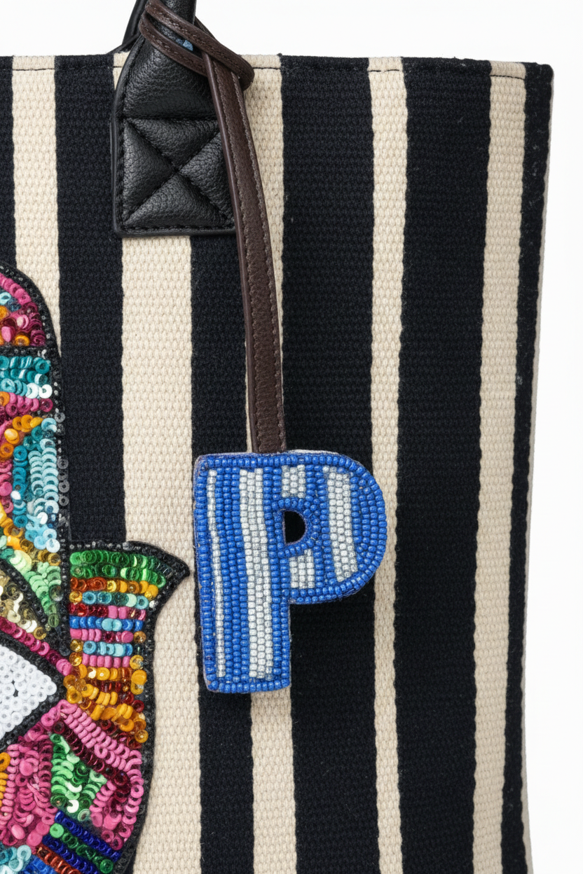 Add a personal touch to your bag with our handcrafted Letter Charm. Featuring intricate hand-embroidered beadwork, this charm brings texture, colour, and character to your everyday carry. Finished with a sleek leather tie, it’s designed to attach effortlessly and stand out as a subtle statement.